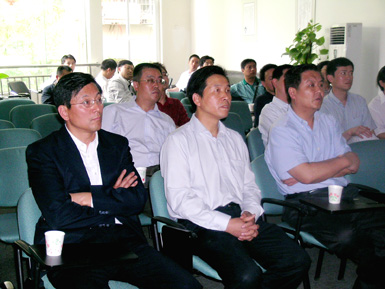 王忠林副市長一行受到公司總經理王鵬的熱情迎接,在公司培訓大廳,王總就網站建設、網絡營銷及電子商務一站式服務等業務情況向領導們進行了匯報。在匯報和演示過程中,王忠林副市長和其他領導們在認真聽取匯報的同時,還針對公司現有業務的服務方式,產品表現形式,贏利模式及公司的發展狀況等情況進行了詳細的詢問。